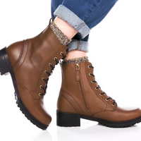 Perfect for cold weather - so boot-up and stand-out in the crowd wearing the block heel Cole Haan® Camea Waterproof Combat Boot 2. This leather combat boot featuring lace-up ties, stretchy ribbed panels and a lugged sole for trendy style.