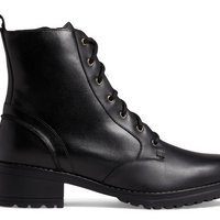 WOMEN'S COLE HAAN CAMEA WATERPROOF COMBAT BOOT | BLACK LEATHER