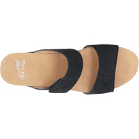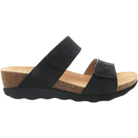 These wedge heel slides boast adjustable straps, premium leather uppers and a cushy cork infused midsole for comfortable wear. This fully adjustable wedge sandal features hook and loop closures on both straps, a lightweight cork midsole and an EVA outsole.