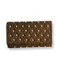 This beautiful clutch is designed with a combination of rich gold and pearl beads. The clutch has a snap closure on the front flap. The clutch comes with a chain strap and the back has identical beadwork as the front.