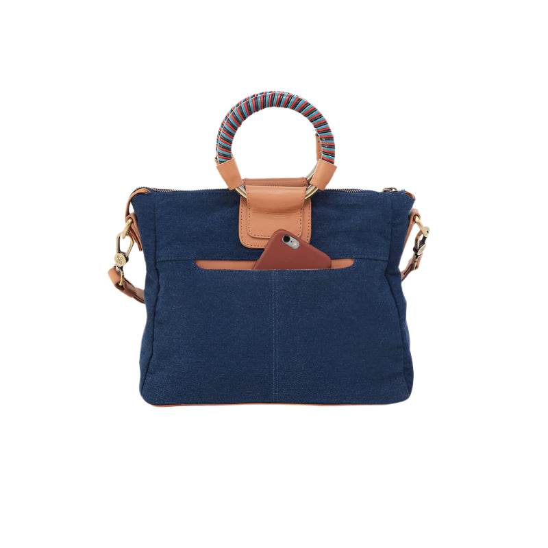 Dark denim for casual wearability and a denim wrapped handle for a pop of playfulness. No more searching for your phone, there’s a back slip pocket for that. So much interior space because we know you need room to grow. Pockets aplenty? Of course – we know you love staying organized. A removable and adjustable strap so you can wear her as a shoulder bag or crossbody. Oh, and there’s a circular top handle too!