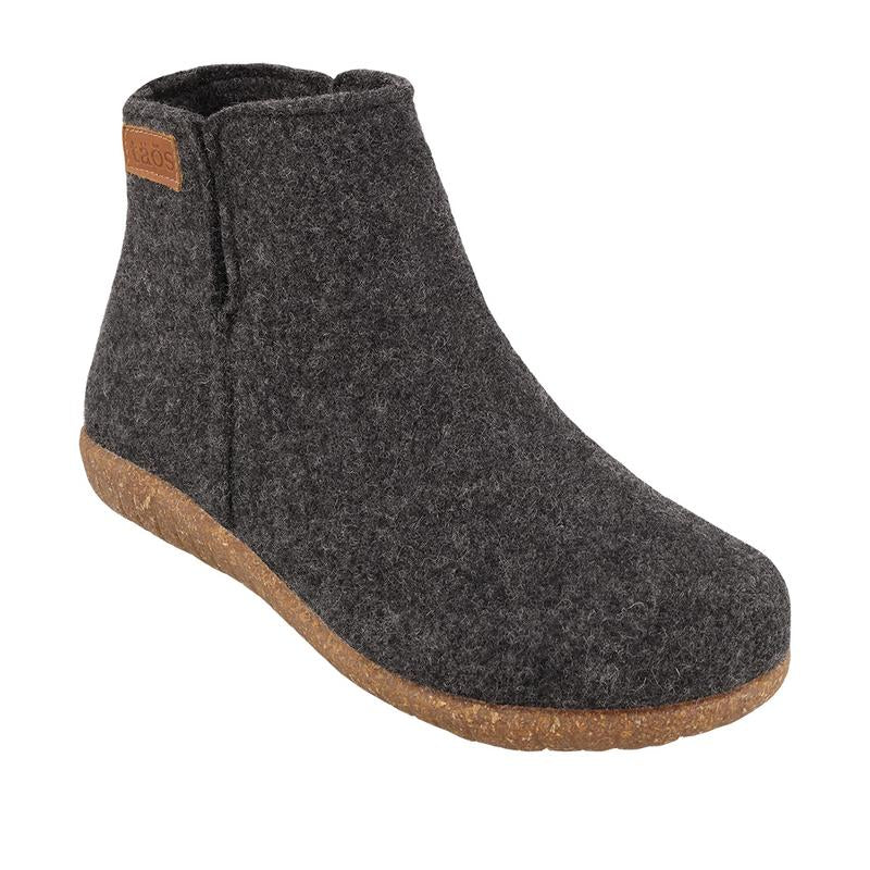 An updated pull on wool boot from Taos is made of "Good Wool", sourced from Italy, and Made In Spain. For extra warmth and more coverage, the Good Wool bootie is the way to go for those cold nights when a slipper simply won't do...PLUS these are perfect for Indoor and Outdoor use, so go ahead, wear these to the grocery store - anything goes! Featuring a removable PU footbed with arch & metatarsal support covered in wool, giving you the support you need and the well being you deserve. Finished with a TR, cork blended outsole that is lightweight, flexible and durable.