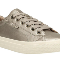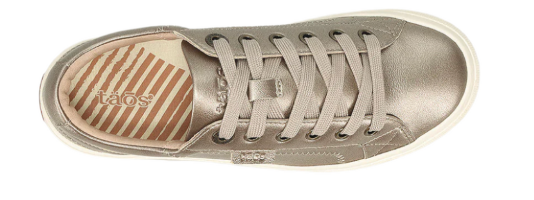 Taos Plim Soul Lux sneakers with metatarsal support. These lace-up leather sneakers have a Curves & Pods® premium removable footbed featuring arch and metatarsal support. They also have a thicker and higher sidewall that distinguishes them as a stylish luxe alternative in the sneaker world. Silvadur treated for lasting protection against odor, staining, and deterioration to keep these stylish shoes anti-microbial and long lasting.