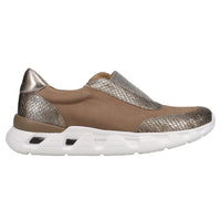 A mix of soft suede, embossed leather and slender chains bring eye-catching textural contrast to a sporty slip-on sneaker designed with a cushy insole. Removable, cushioned insole with arch support Leather upper and lining/rubber sole Imported