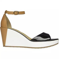 These sandals feature an elegant two-tone design, with a stylish peep-toe and a comfortable wedge heel. The adjustable buckle strap ensures a perfect fit, while the plush cushioned footbed provides all-day comfort and long lasting style.