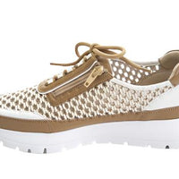 The footwear displays expert craftsmanship with textured braided fabric upper, padded collar, alternative zippered closure, and a lightweight design to keep you on the go. Lace-up fashion sneaker.