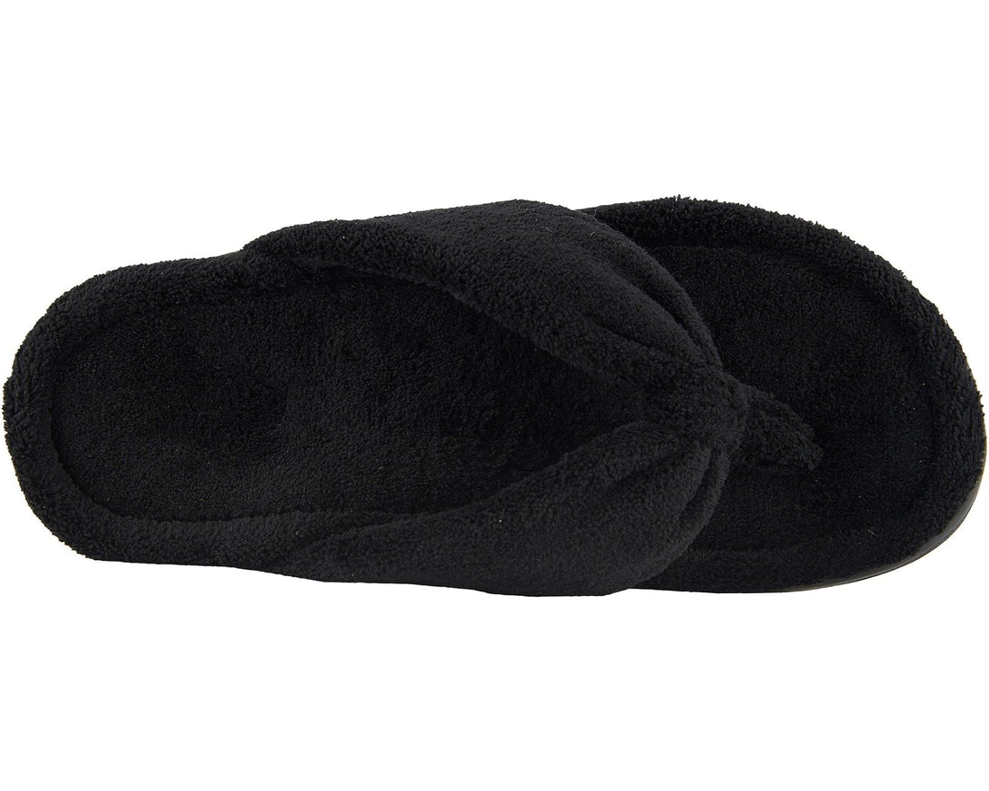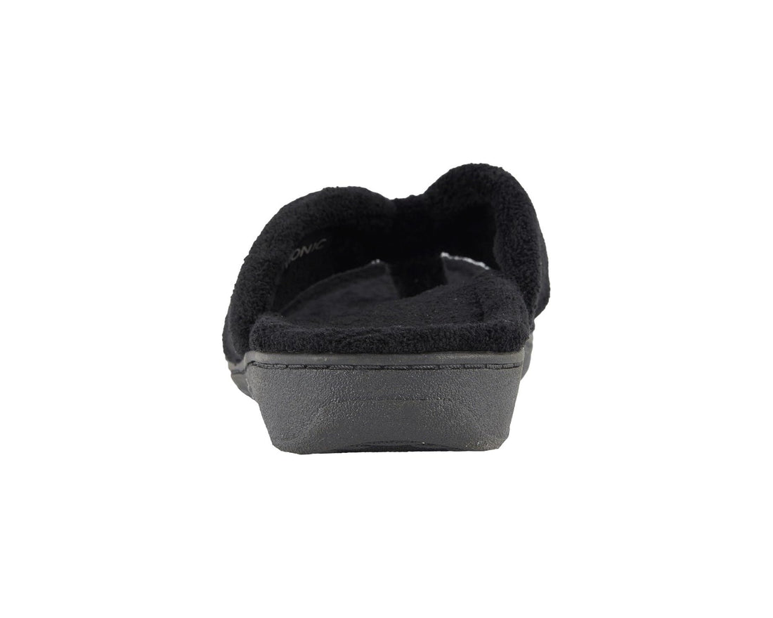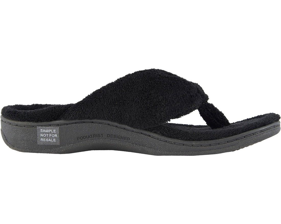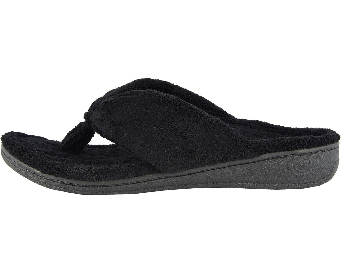 Supportive slippers from Vionic offer a slip on thong design, terrycloth uppers and footbeds. Footbed is treated with anti-bacterial odor-resistant Ecofresh. With Orthaheel Technology these Vionic slippers offer everyday support for at-home wear.