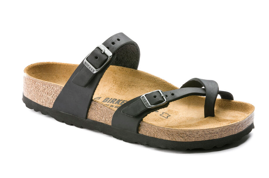 Supremely comfortable with sophisticated, crisscross straps, the Mayari redefines the thong sandal with a single toe loop. A statement finish adds a special sheen to the everyday favorite. Complete with classic BIRKENSTOCK design elements, like adjustable buckle closures and a contoured footbed for the ultimate in support.