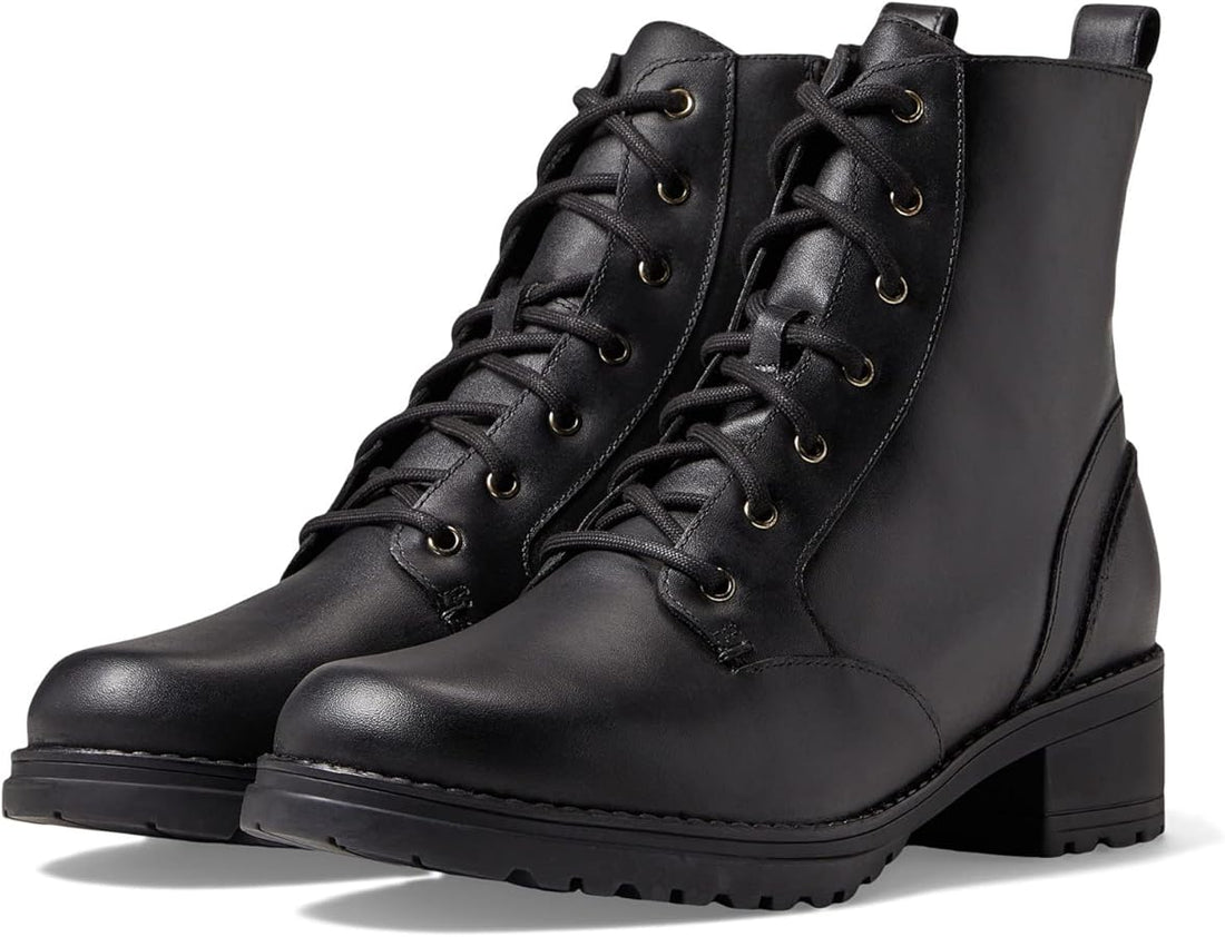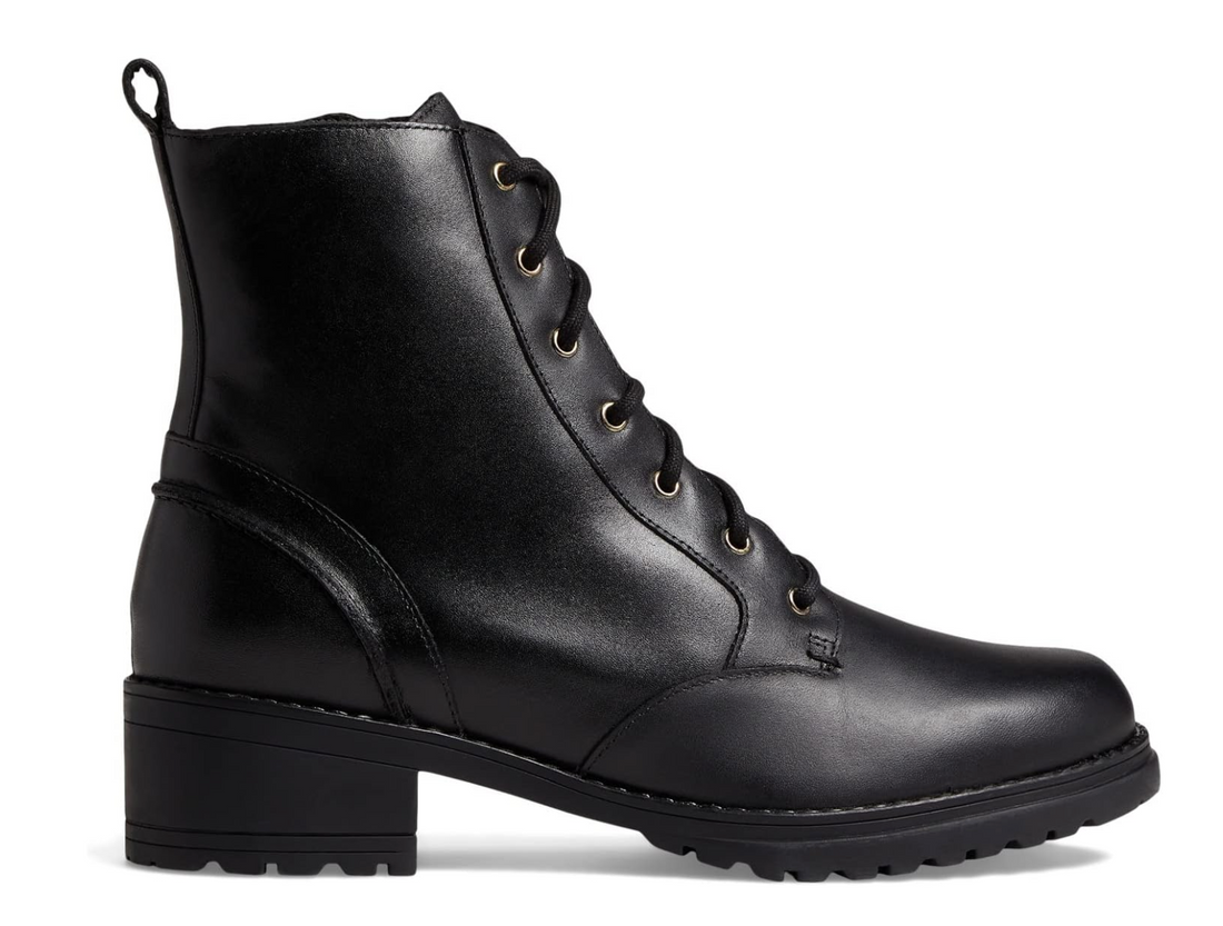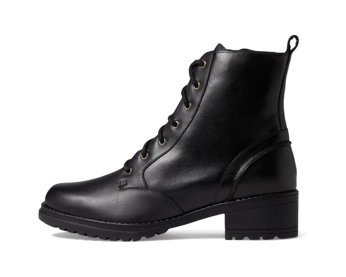 WOMEN'S COLE HAAN CAMEA WATERPROOF COMBAT BOOT | BLACK LEATHER