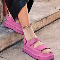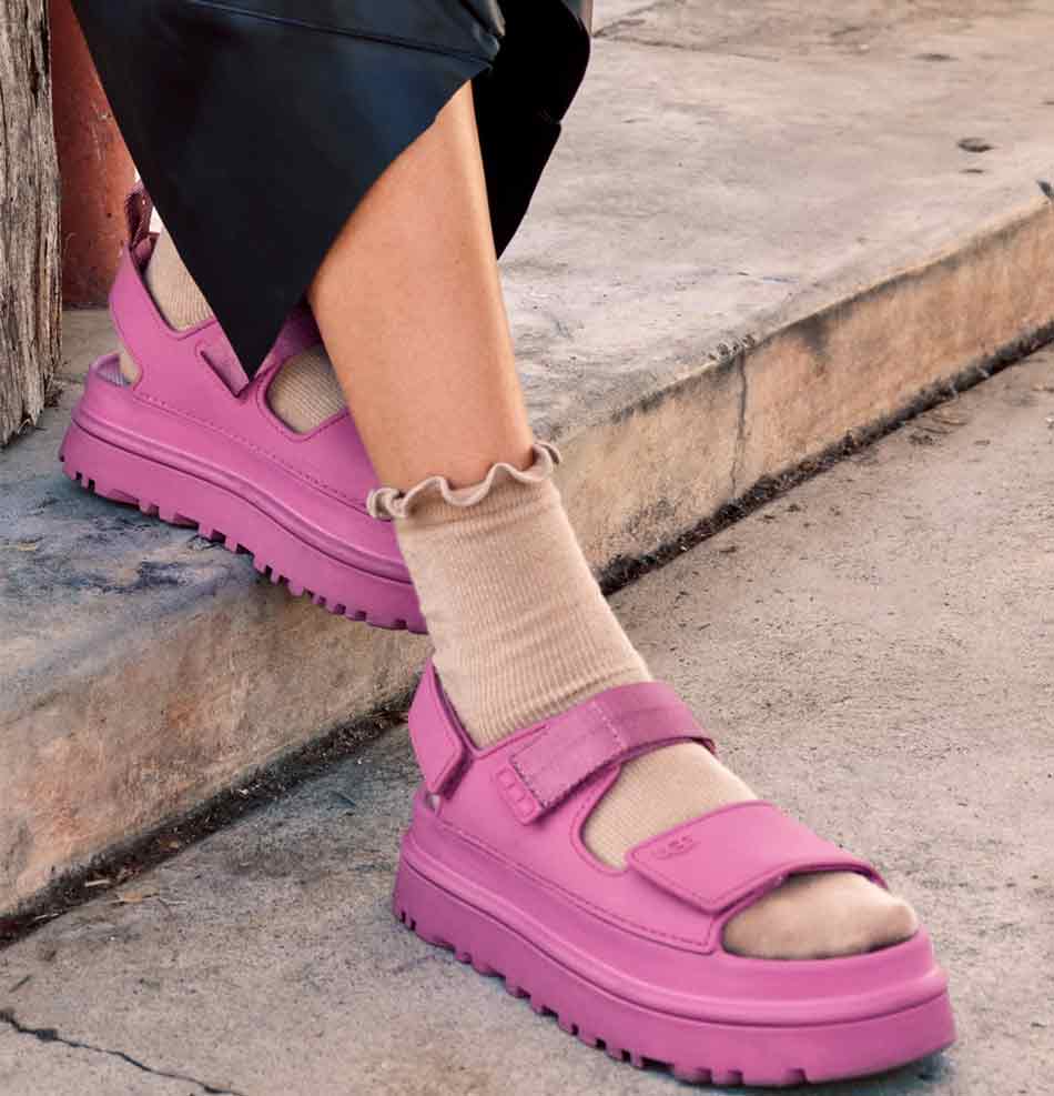 Bask in the GoldenGlow. Super lightweight and ultra-comfortable, the water-friendly GoldenGlow is a fully adjustable sandal. It's made from springy and supportive sugarcane EVA that's ready to wear through rain and shine. Stacked on a platform with a lug sole and complete with a grippy footbed, this pair looks as dynamic as it'll make you feel.