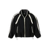 • Scalloped trim along center front closure, pocket zipper plackets, and cuffs