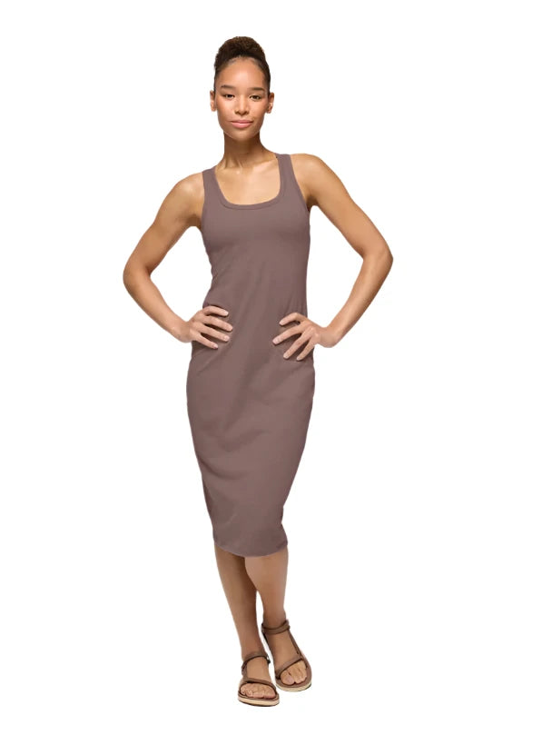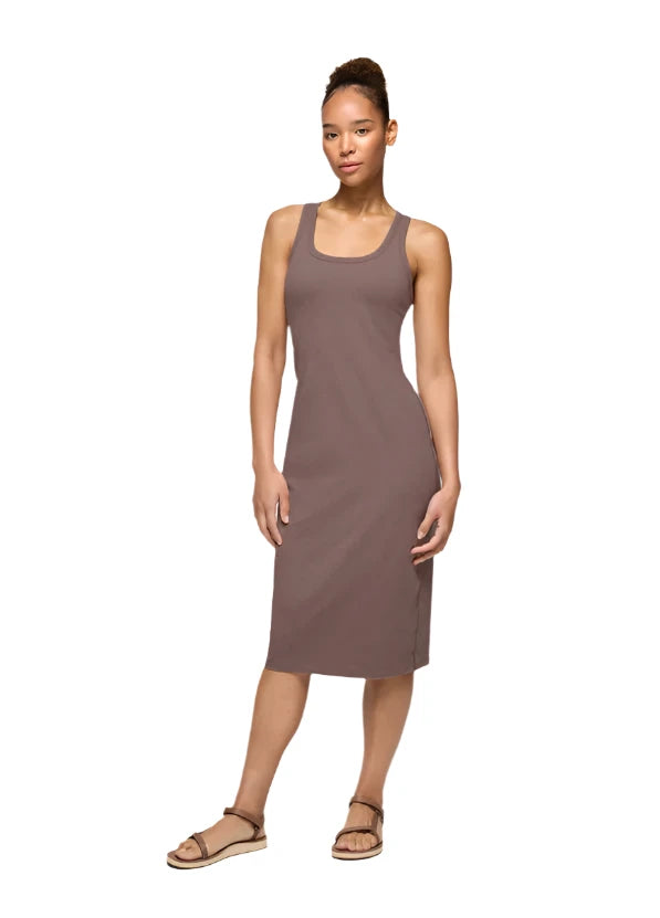 WOMEN'S PRANA HEAVANA RACERBACK MIDI DRESS | CAROB HEATHER